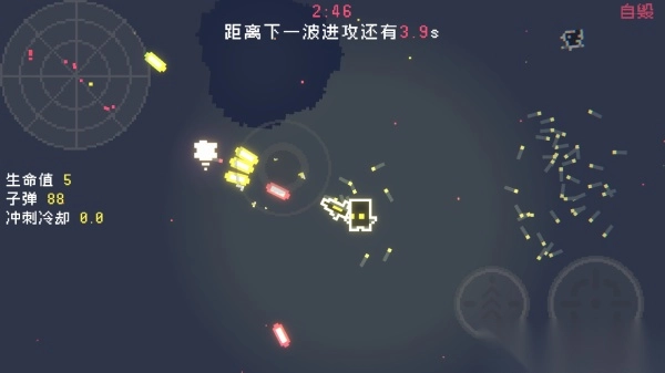 2. 正式开始后左边控制角色的移动,右边是闪避和射击。