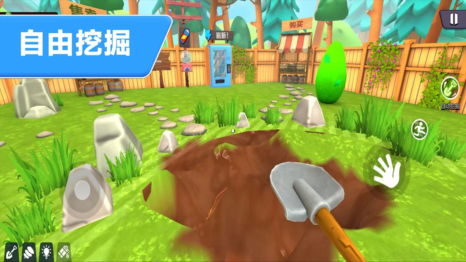 1、玩家从自家院子开启刺激的地底探险,用铲子挖掘隧道,深入地下,探索神秘未知,满足对地下世界的好奇与探索欲。